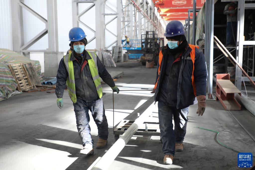 2022年12月12日,在位于蘭州新區(qū)的蘭州宏彬新能源發(fā)展有限公司,工人在搬運建材,抓緊施工。新華社記者 馬希平 攝