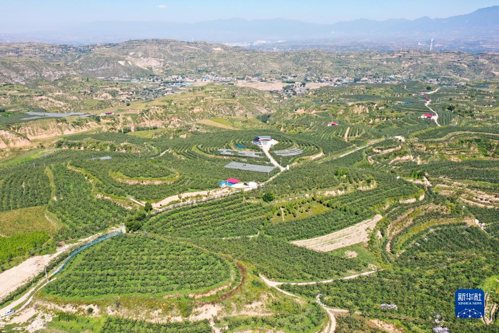 這是位于山西省汾西縣的一處梨園(2022年攝,無人機照片)。新華社發(fā)