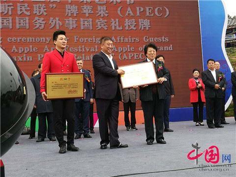 王冀女士為棲霞“華昕民聯(lián)”牌蘋果(APEC)中國國務(wù)外事國賓禮授牌