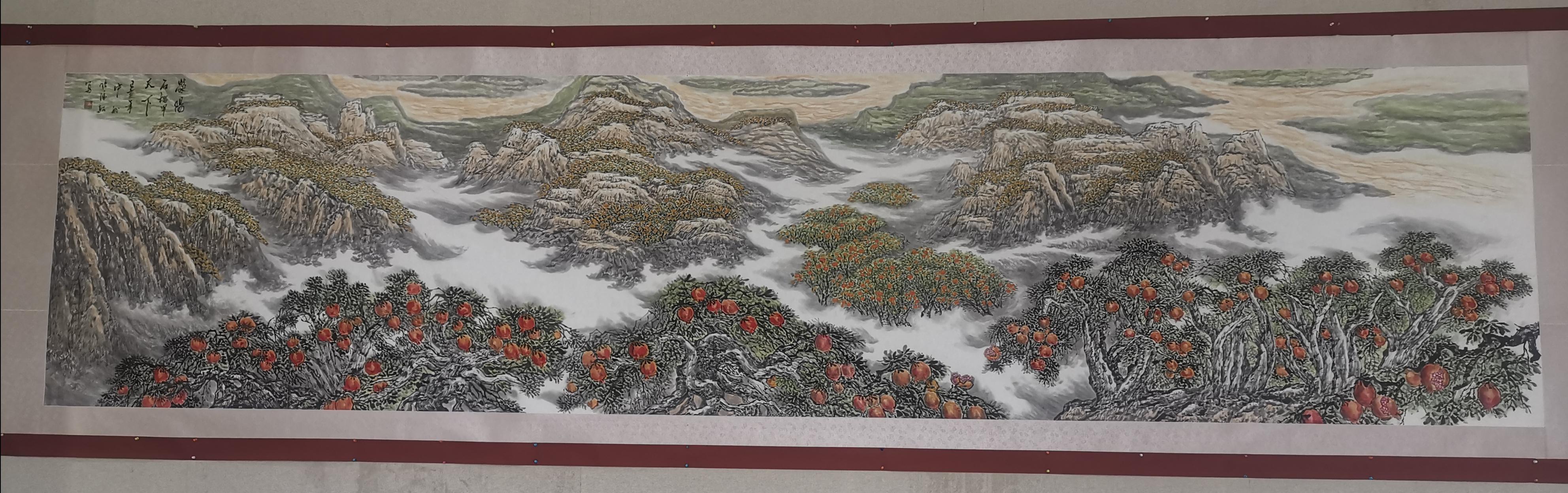 01 美麗河陰石榴近期,滎陽書畫家深入滎陽石榴產(chǎn)業(yè)帶,用厚重、芬芳、傳統(tǒng)的筆墨繪就了5米長卷,展現(xiàn)了河陰石榴之美:春花秋實有碩果,滎陽石榴使人迷。