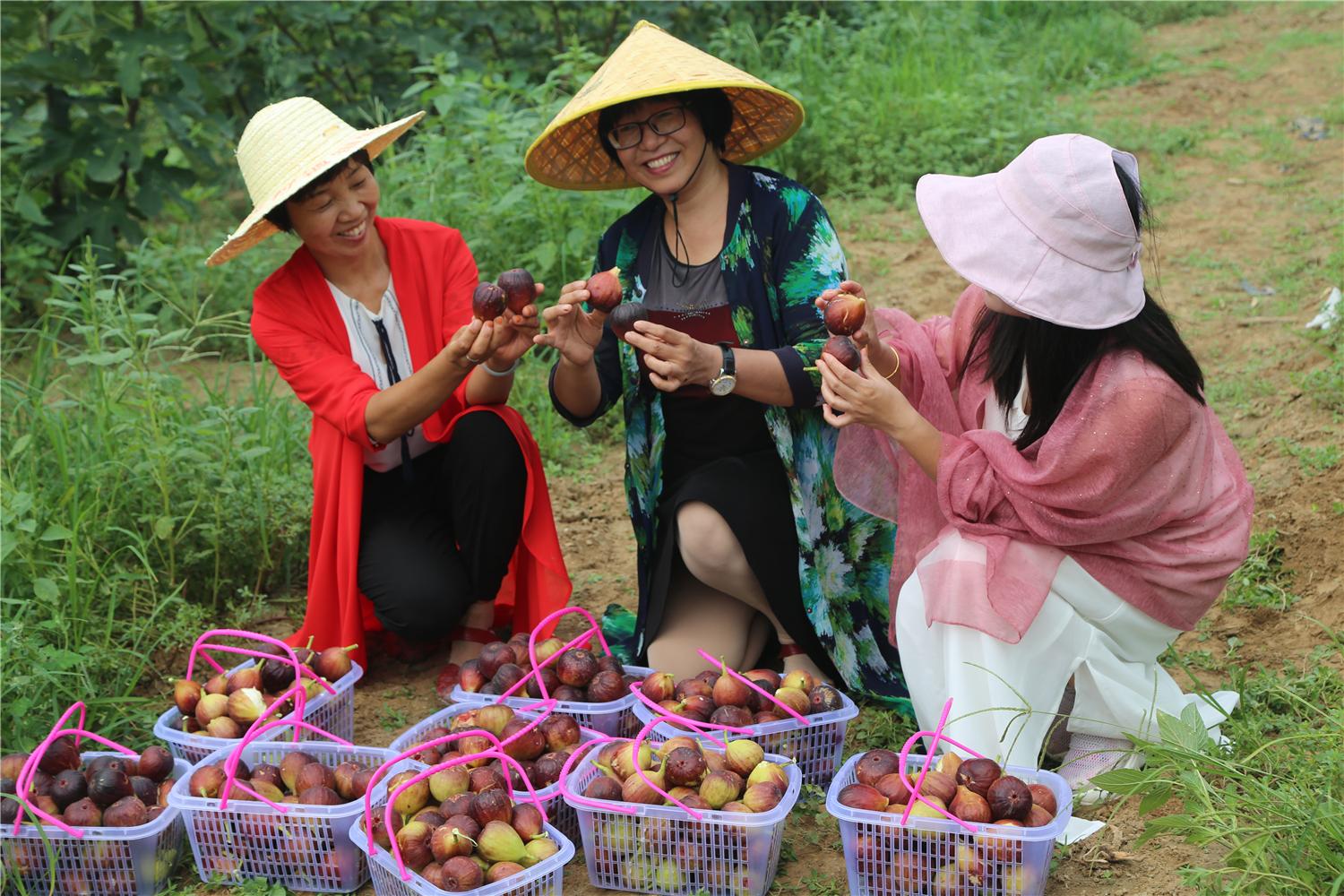 成片的果樹枝繁葉茂,紫紅相間的無花果掛在枝丫上,讓人垂涎欲滴。鄭州市匯川農(nóng)業(yè)科技有限公司是一家集無花果種植、深加工和銷售為一體的新型互聯(lián)網(wǎng)+農(nóng)業(yè)創(chuàng)業(yè)型企業(yè)?,F(xiàn)有千余畝無花果種植基地,是整個中原地區(qū)種植面積大、品種多、產(chǎn)量高的無花果種植基地。此外,已建成投入使用3000平方米深加工廠房,主要有無花果酵素、果醋、果酒等系列加工產(chǎn)品。這樣,周邊村民一年四季可在家門口就業(yè)。