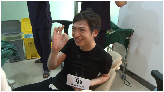 在種植牙期間,現(xiàn)場(chǎng)觀眾通過(guò)大屏幕直播觀看,顯而易見(jiàn)的是調(diào)節(jié)前張霜?jiǎng)ο壬芫o張,結(jié)束過(guò)后,張霜?jiǎng)ο壬氐交顒?dòng)現(xiàn)場(chǎng)感覺(jué)特別輕松,大贊牙潔仕的種植牙技術(shù)。即興表演起了默劇,全場(chǎng)觀眾為其鼓掌助威。