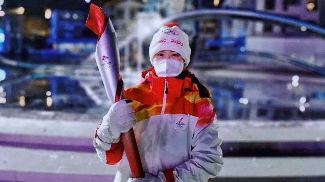 2月4日晚,2022年北京冬奧會張家口賽區(qū)火炬臺點火儀式現(xiàn)場,在一片歡呼聲中,19歲的女孩王文卓點亮了火炬。
