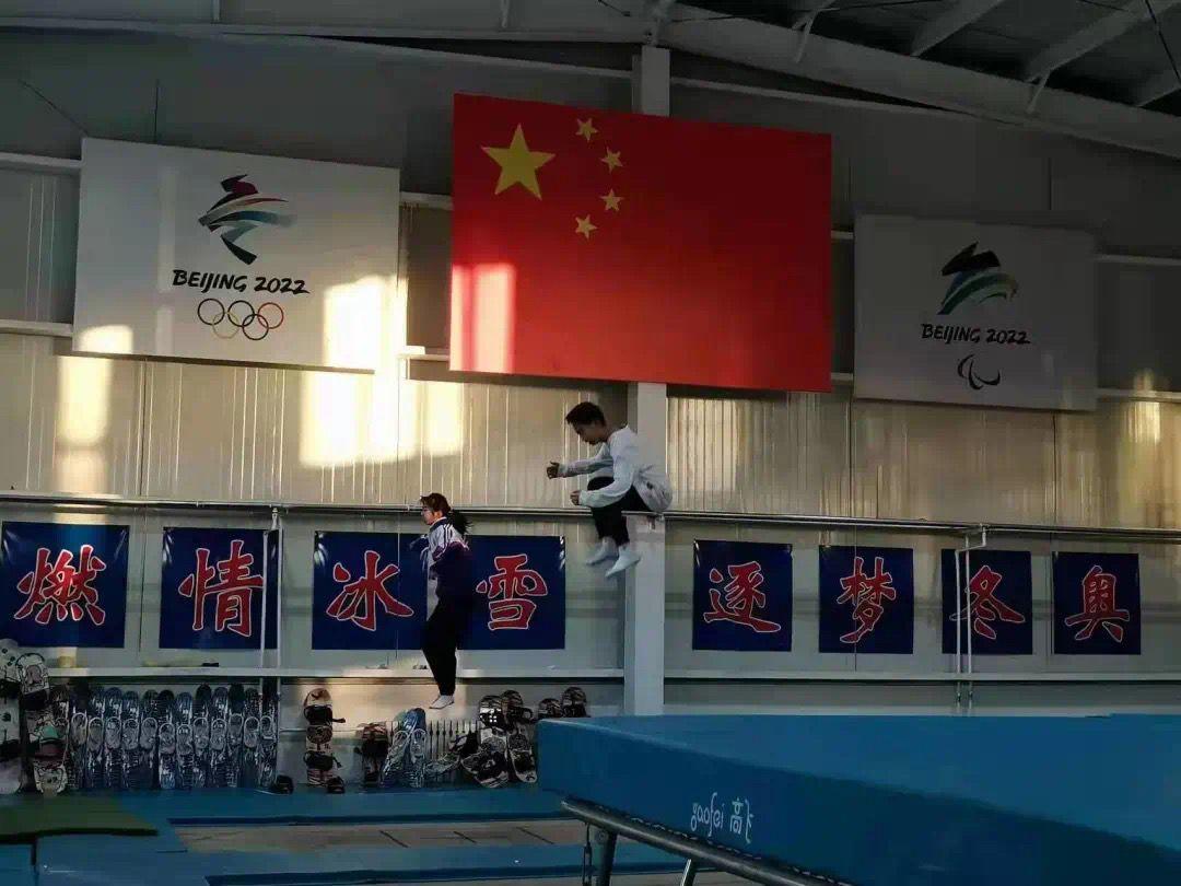 2022年冬奧會前夕,學(xué)校的室內(nèi)訓(xùn)練館內(nèi),冰雪班的隊員們正在進行基礎(chǔ)訓(xùn)練。受訪者供圖