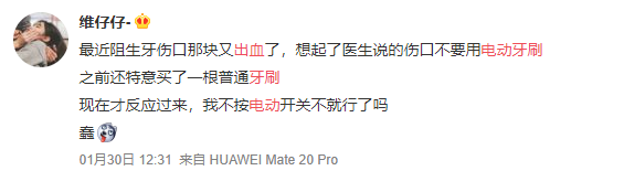 購(gòu)買技巧一:不要盲目迷信,崇洋媚外盲目跟風(fēng)買所謂的。先不說價(jià)格昂貴,更重要的是震感太強(qiáng)了,對(duì)牙齒造成巨大的摩擦,十分容易傷牙,給牙齒帶來不可逆的傷害。其實(shí)這些所謂的,基本都是國(guó)內(nèi)貼牌代工生產(chǎn),在技術(shù)研發(fā)上投入很低,傷牙率很高!這也是典型的電動(dòng)牙刷引發(fā)的危害隱患。震感過強(qiáng)牙齒雖然干凈了,但大概率會(huì)導(dǎo)致牙齦出血,下面這位網(wǎng)友就是一個(gè)典型的例子: