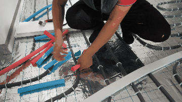 地暖管鋪設(shè)完成后,師傅會(huì)為管道進(jìn)行溫控區(qū)域標(biāo)注,便于識(shí)別管路的房間區(qū)域。