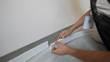 在鋪設(shè)邊角保溫條時(shí),師傅仔仔細(xì)細(xì)的把墻邊清掃了一遍,這是為了防止保溫條粘貼太多的泥灰。這一點(diǎn),贊!而在鋪設(shè)邊角保溫條轉(zhuǎn)角的時(shí)候,師傅用手指一點(diǎn)點(diǎn)摁實(shí),盡量減少空隙。威能溫暖家所用的專用保溫條寬80mm,當(dāng)兩條保溫條接口處交叉鋪設(shè)至少30mm,可保溫層的熱量不會(huì)通過墻體流失。
