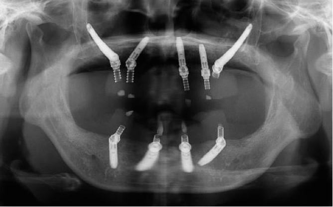 按照術前計劃于上下頜植入共9枚種植體