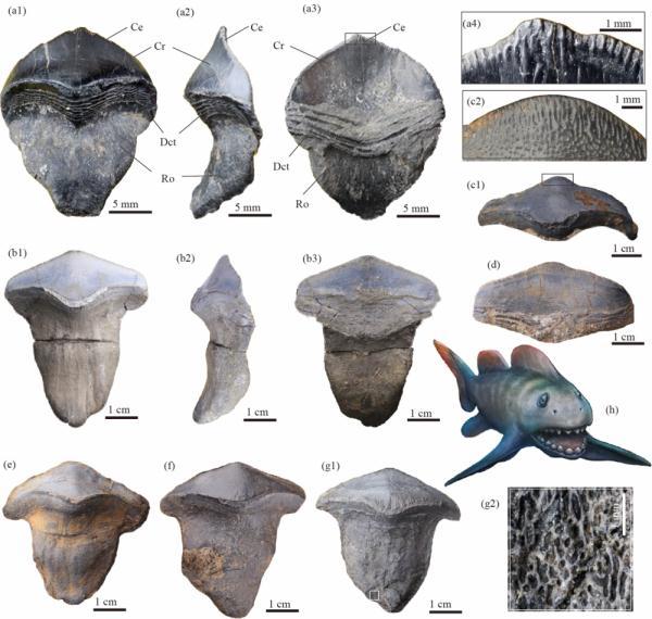 在幾億年前的海洋里,瓣齒鯊究竟是怎樣生活和捕食的呢?林翔鴻介紹,傳統(tǒng)觀點(diǎn)認(rèn)為,它們是一種底棲的運(yùn)動(dòng)緩慢的食殼魚類,以底棲的腕足類、雙殼類等具殼生物為食。但此次研究發(fā)現(xiàn),環(huán)繞在瓣齒鯊齒冠基部的水平疊瓦狀脊紋條帶,可能具有在牙齒刺穿肌肉軟組織時(shí),通過增加摩擦來防止獵物逃脫的功能。