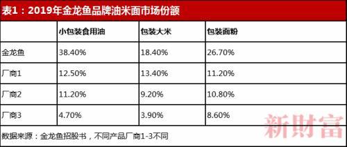 值得注意的是,在眾多對手環(huán)伺下,金龍魚在米面產(chǎn)品上遭遇隱形天花板,無法獲得像食用油一樣的市場份額。