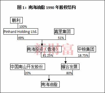 1990年,南海油脂引入外資。鵬利將所持股權(quán)轉(zhuǎn)讓給耀合發(fā)展有限公司(簡稱“耀合發(fā)展”),郭氏家族旗下的嘉里糧油集團(tuán)以入股耀合發(fā)展的方式,成為南海油脂的股東。