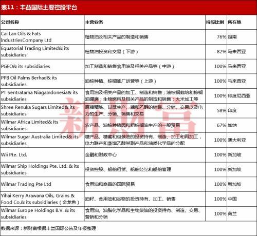 豐益國際以這樣的方式,在新加坡、中國、越南、馬來西亞、印度、加納、澳大利亞、荷蘭、印度尼西亞均設(shè)立了控股平臺(表11),憑借這些控股平臺控制著旗下500多家的糧油相關(guān)制造、銷售企業(yè),成為食用油加工銷售、特種脂肪、米面加工等領(lǐng)域的。
