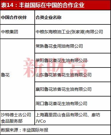 中糧是豐益國際、金龍魚在中國重要的合作伙伴(表11)。中糧與金龍魚的合資企業(yè)包括中糧東海糧油工業(yè)(張家港)有限公司、中糧黃海糧油工業(yè)(山東)有限公司、中糧四海豐(張家港)貿(mào)易有限公司、中糧北海糧油工業(yè)(天津)有限公司等。豐益國際參股了中國大的國資糧油企業(yè)中國糧油控股,還參股了食用油第三大品牌魯花(表14),分享中國食用油品牌的發(fā)展成果。