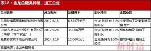 作為亞洲糖王郭鶴年旗下企業(yè),在完成糧油市場的布局、衍生產(chǎn)品規(guī)模化后,豐益國際起家老本行糖種植、加工的業(yè)務(wù)才開始進(jìn)入中國(表18)。2012年9月28日,金龍魚在中國成立內(nèi)蒙古荷豐農(nóng)業(yè)股份有限公司(簡稱“荷豐農(nóng)業(yè)”),開展甜菜種植和糖加工業(yè)務(wù)。