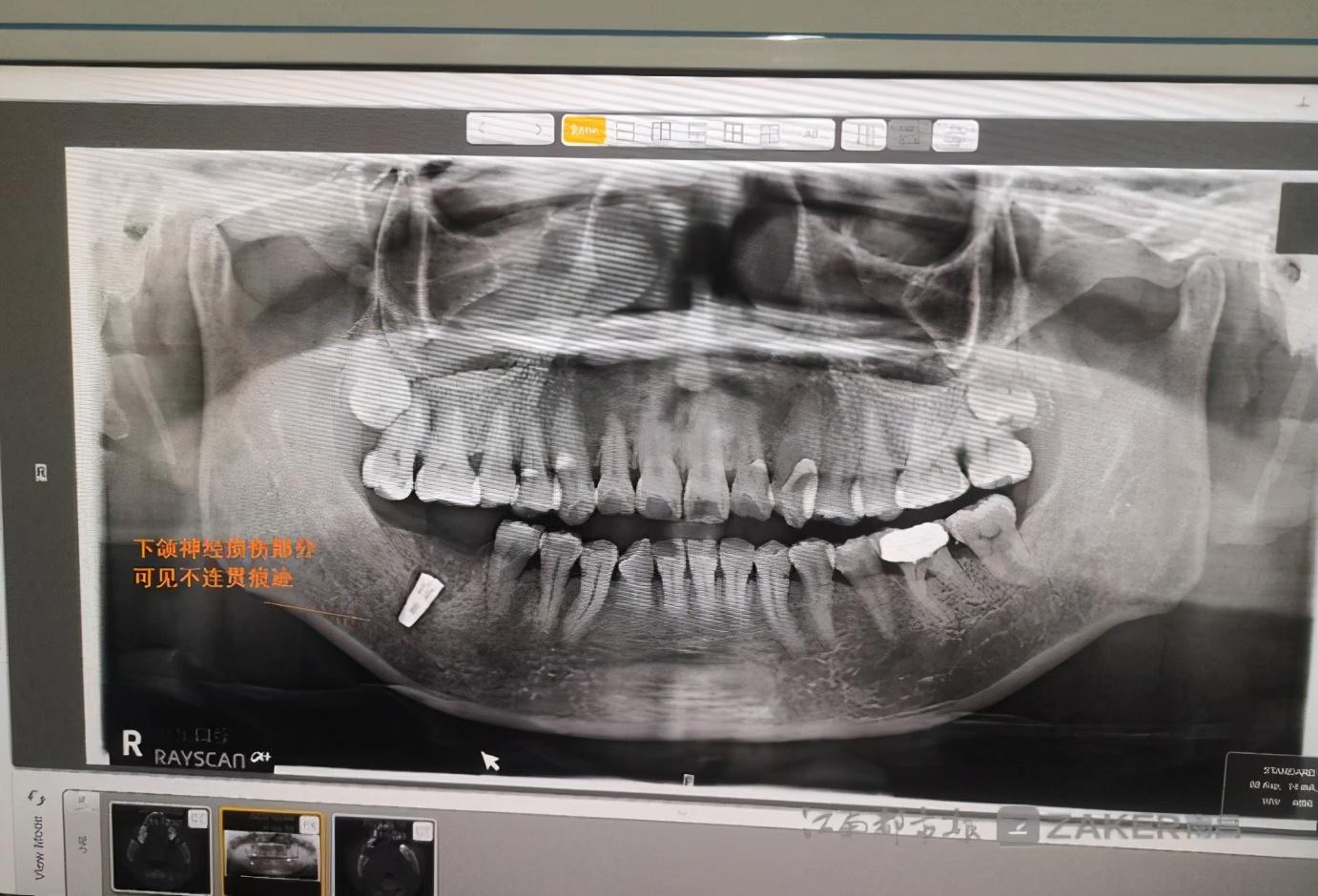 9 月 8 日,繆女士覺得麻木感仍未消失,于是聯(lián)系 " 軒牙口腔 " 咨詢,吳云讓其到門診部重新拍片查明原因。