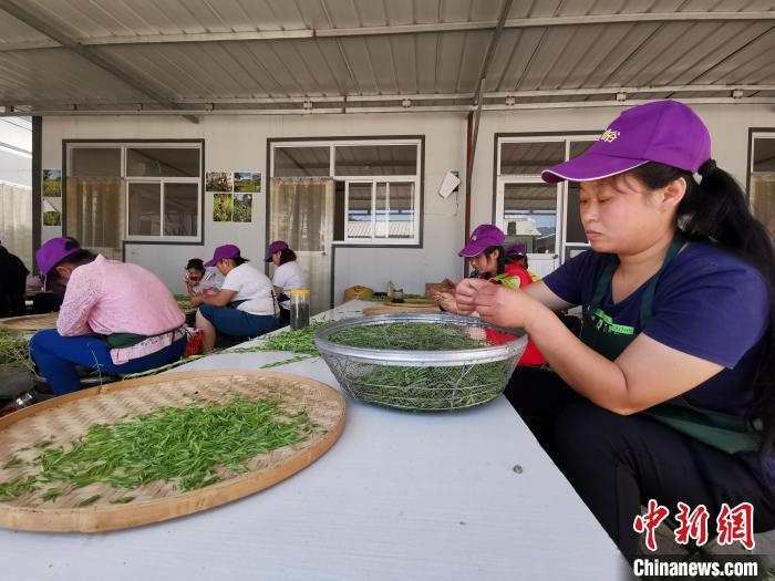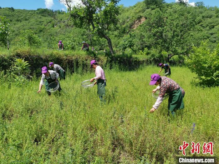 圖為郭家峪村女茶工在黃芩種植基地采茶。 楊猛 攝