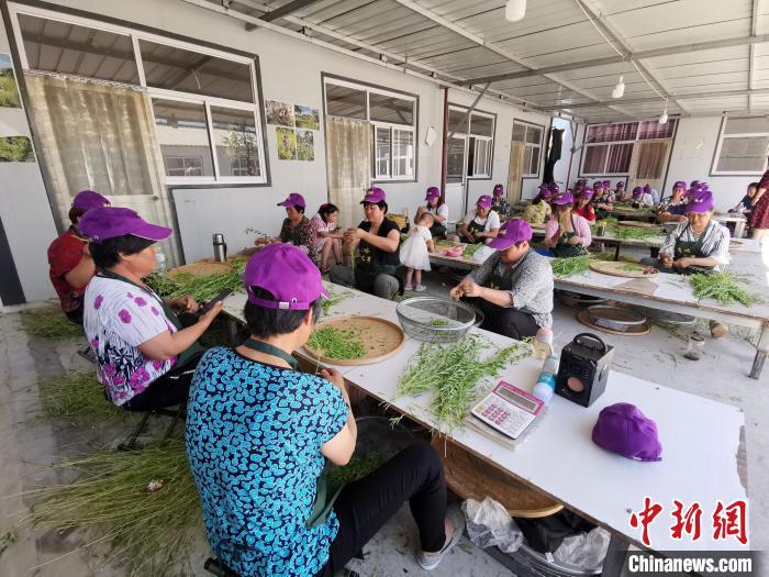 中新網(wǎng)保定7月9日電 (呂子豪 楊志民)從河北保定淶水縣城出發(fā),沿蔥郁蜿蜒的太行山路行馳約110公里至郭家峪村,數(shù)百畝蔥綠、嫩黃、姹紫相映襯的黃芪種植基地映入眼簾,十幾名婦女在山坡間收割、采茶,空氣中彌漫著淡淡茶香。