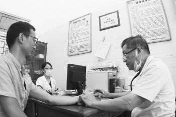 上墩衛(wèi)生院內(nèi),副主任醫(yī)師羅耀明在給病人把脈。