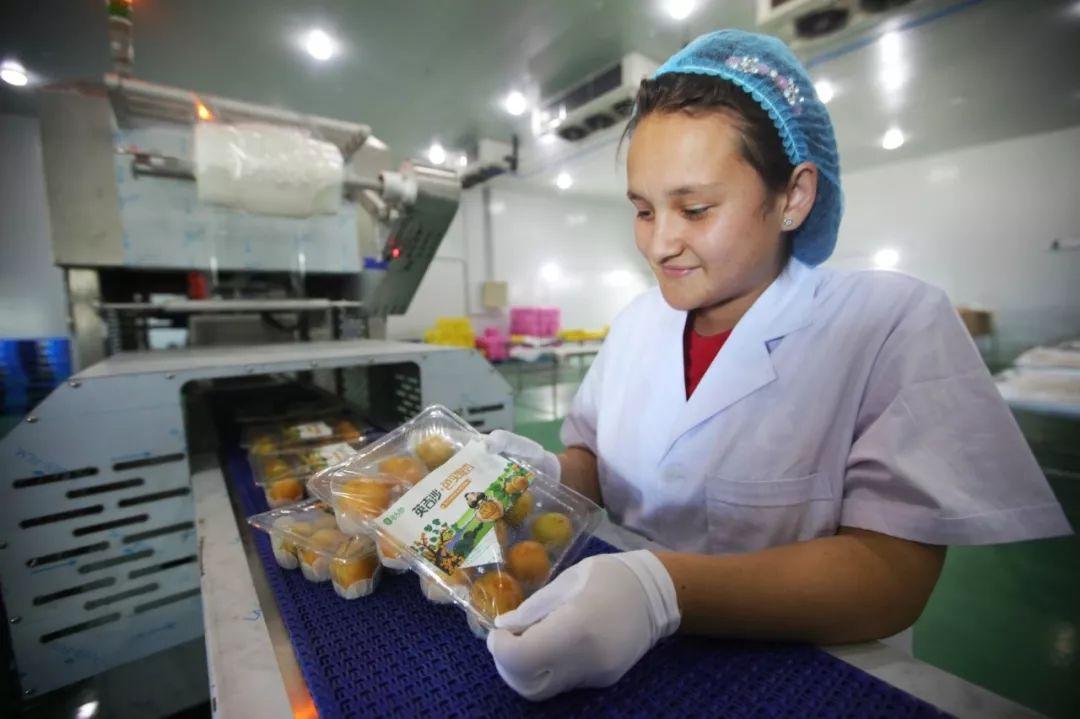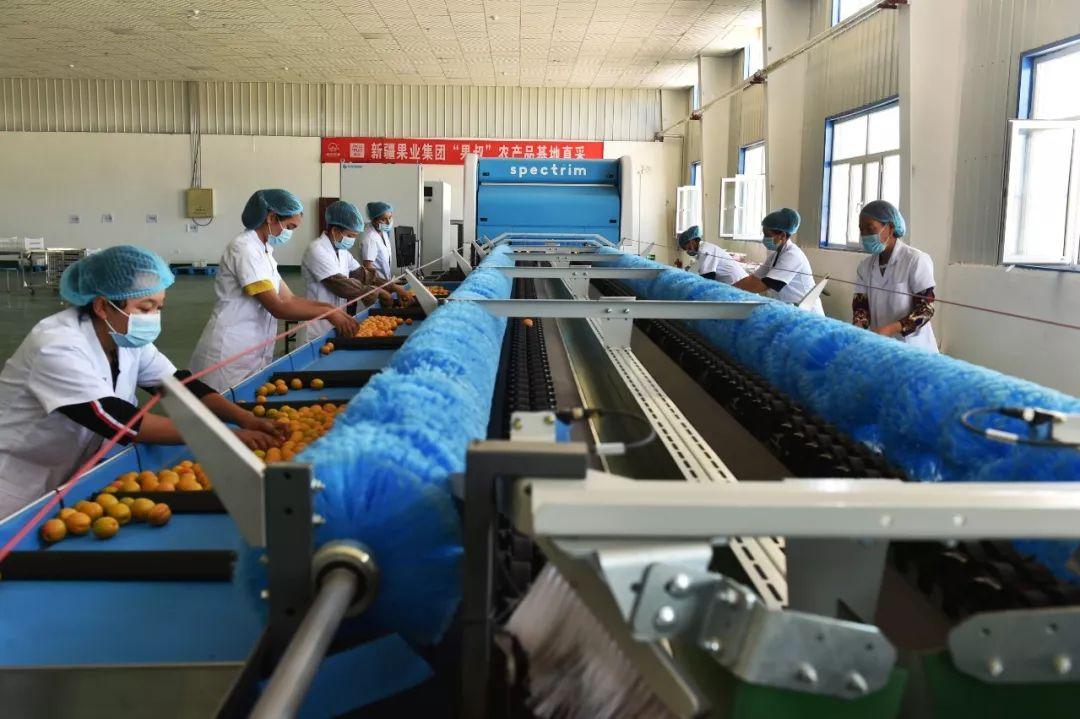 今年,新疆果業(yè)大唐絲路電子商務(wù)有限公司在英吉沙縣新建了一座包裝加工廠,專門從新西蘭引進(jìn)了一條價(jià)值400萬元的自動(dòng)機(jī)器分揀生產(chǎn)線,可以快速地將殘次、有蟲眼的杏子挑揀出來,并按照果實(shí)大小自動(dòng)分類。
