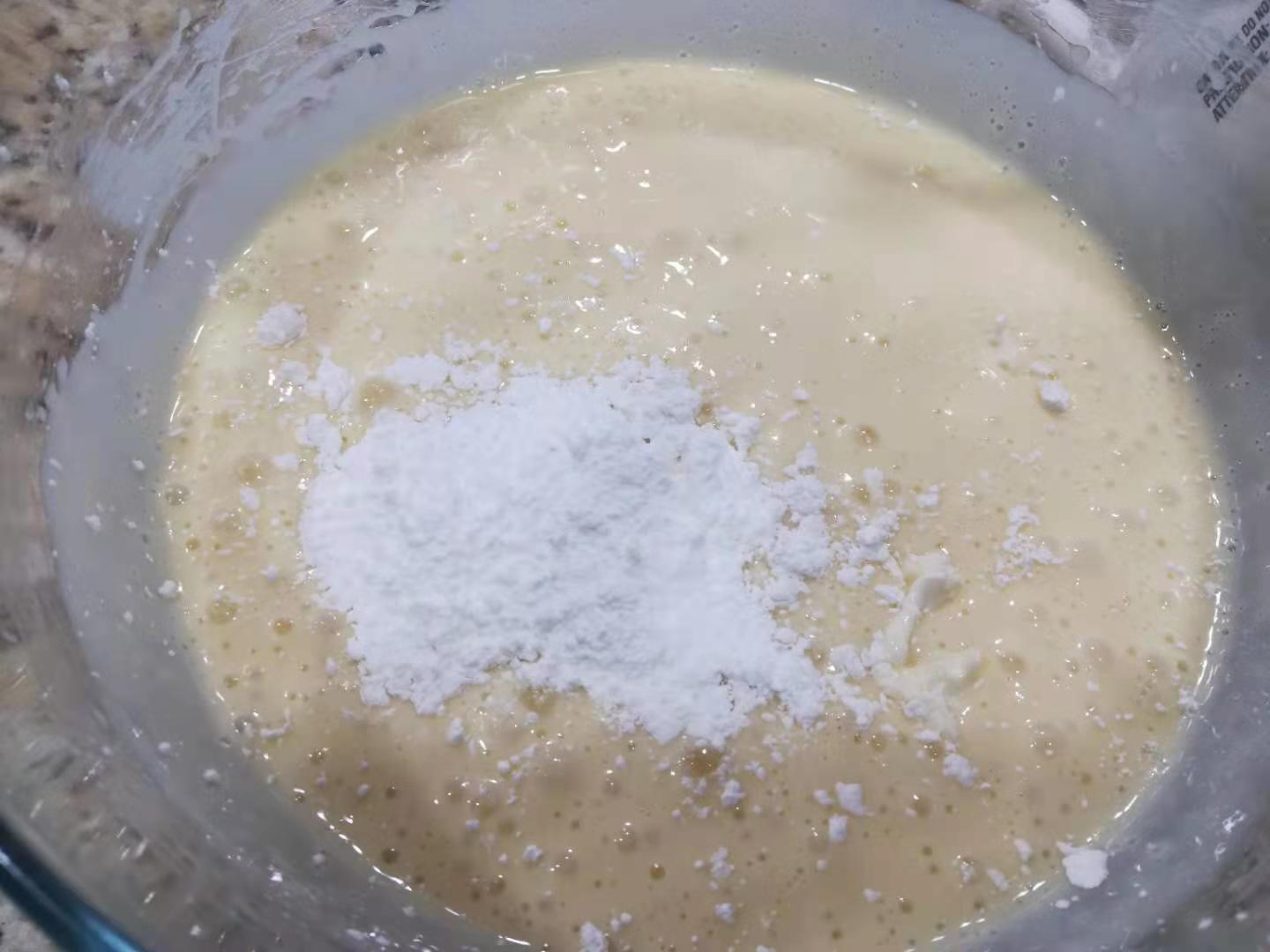 篩入玉米淀粉,用蛋抽手動(dòng)攪拌均勻。
