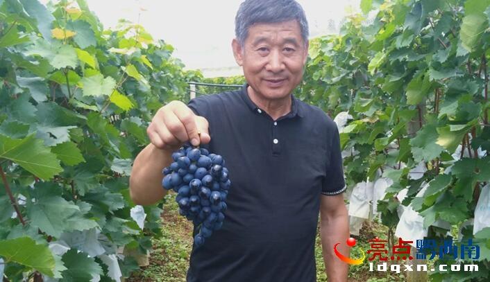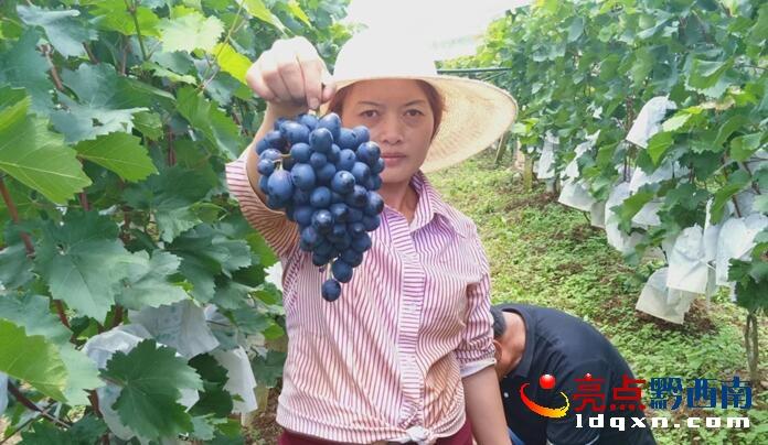 聽說奔坡的葡萄熟了。8月17日,筆者趕到到興義市白碗窯鎮(zhèn)普哈村奔坡村民組黑皇后葡萄園,在葡萄園負責人胡榮春和工程師張洪光的引領下跨入葡萄園。
