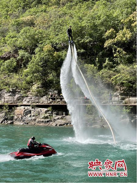 春日的寶泉,山清水秀,郁郁蔥蔥,進(jìn)入一年中美好的季節(jié)。一輛輛大巴車(chē)駛?cè)胄锣l(xiāng)輝縣寶泉景區(qū),桃花坪停車(chē)場(chǎng)上熱鬧非凡,一場(chǎng)精彩刺激的水上飛人秀及摩托艇表演,令駐足碧水兩岸的幾千名游客們直呼“過(guò)癮”。