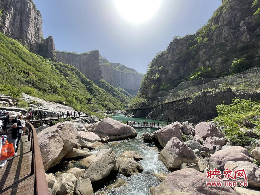 4月27日上午,沿著高速看河南集中行采訪團(tuán),沿鄭云高速進(jìn)入新鄉(xiāng)境內(nèi)近的寶泉景區(qū),在寶泉景區(qū)內(nèi),游龍峽谷紅巖絕壁、溝壑縱橫,寶泉湖水碧波蕩漾、一望無(wú)際,漫步景區(qū)中,五步一潭,十步一瀑,游客可盡情欣賞嶂石巖陡崖斷層地貌形成的形態(tài)各異、密集壯觀的瀑布群。