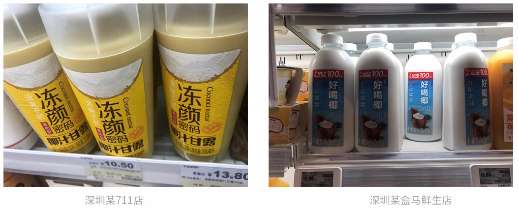 但形勢(shì)很快在同年的雙11迎來(lái)改變,菲諾力壓椰樹(shù)拔得椰基飲品的頭籌。同期上榜的品牌還有椰子知道。這兩個(gè)新銳品牌的價(jià)格均高于椰樹(shù),從中高端市場(chǎng)切入,避開(kāi)與椰樹(shù)的正面價(jià)格競(jìng)爭(zhēng)。