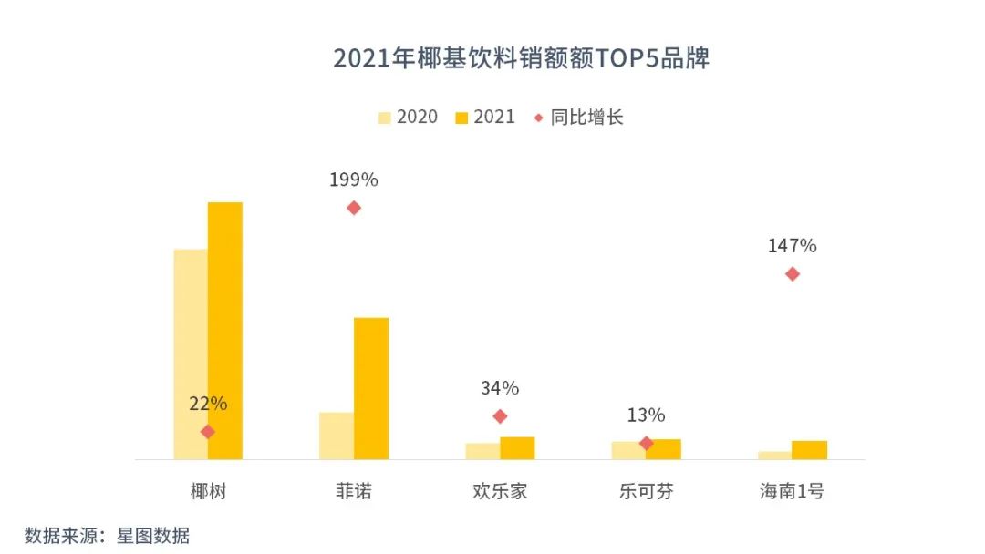 從2021年銷額排名前20的植物蛋白飲料品牌來(lái)看,椰基品牌數(shù)量占比多,為35%;而其品類銷售額也超過(guò)了之前大熱的燕麥奶。