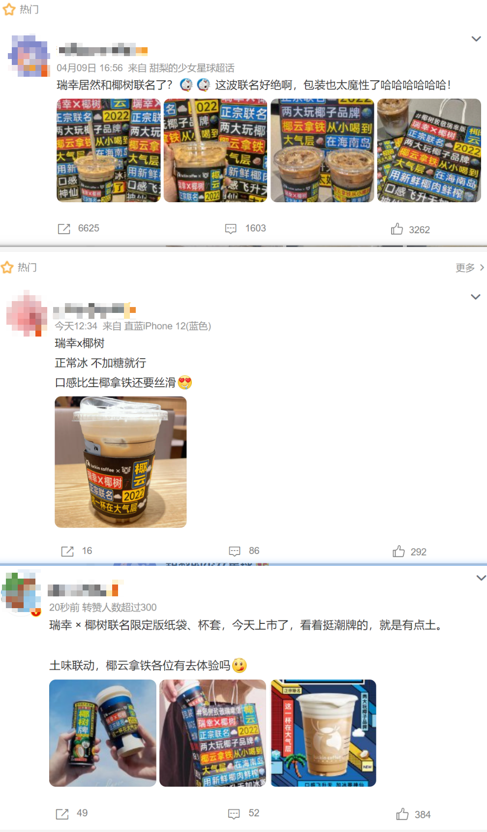 三是通過(guò)公關(guān)軟文、跨界聯(lián)名等方式,借由客戶或合作伙伴的評(píng)論、分享、二次傳播、口碑傳播塑造用戶的信任,加快購(gòu)買決策。菲諾在今年3月攜手蜜雪冰城旗下咖啡品牌幸運(yùn)咖,聯(lián)合推出新品“椰椰拿鐵”,定價(jià)10元,強(qiáng)調(diào)“平價(jià)而不低端”的產(chǎn)品特點(diǎn)。而本次椰樹(shù)與瑞幸聯(lián)名,也是椰樹(shù)擺脫形象老化,擁抱年輕群體的嘗試。作為椰樹(shù)34年來(lái)的對(duì)外聯(lián)名活動(dòng)本身話題性就極強(qiáng),同時(shí)又正值擁有龐大自有流量池的瑞幸咖啡發(fā)起以#生椰拿鐵1周年紀(jì)念日#的話題互動(dòng)抽獎(jiǎng),自然吸引了大量用戶前來(lái)參與,擴(kuò)大聲量,增加品牌曝光。
