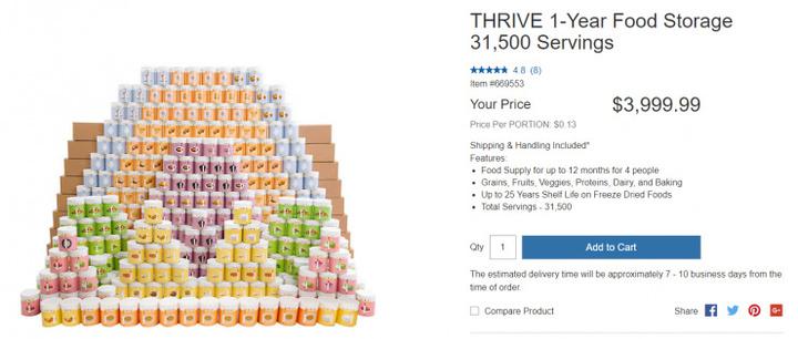 其中貴的套餐可以滿足 4 口之家一年的食物供給,保質(zhì)期長(zhǎng)達(dá) 25-30 年。