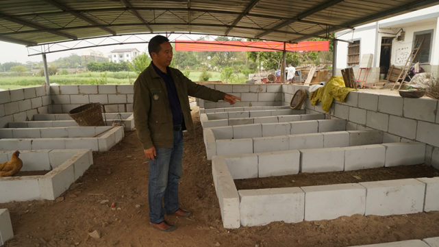新民村8社,村民楊世海的房屋旁邊多了一排圈舍?!斑@是合作社養(yǎng)殖環(huán)境昆蟲的‘車間’?!睏钍篮J呛献魃绾匣锶酥?,他把房屋和院壩拿出來作為環(huán)境昆蟲養(yǎng)殖試驗(yàn)示范基地和疫木粉碎木屑等有機(jī)農(nóng)林廢棄物轉(zhuǎn)化的場所。