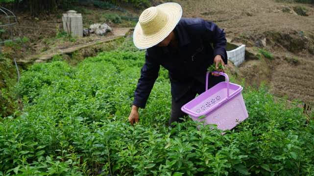 西彭鎮(zhèn)新民村,村民正在采摘枸杞芽菜 。