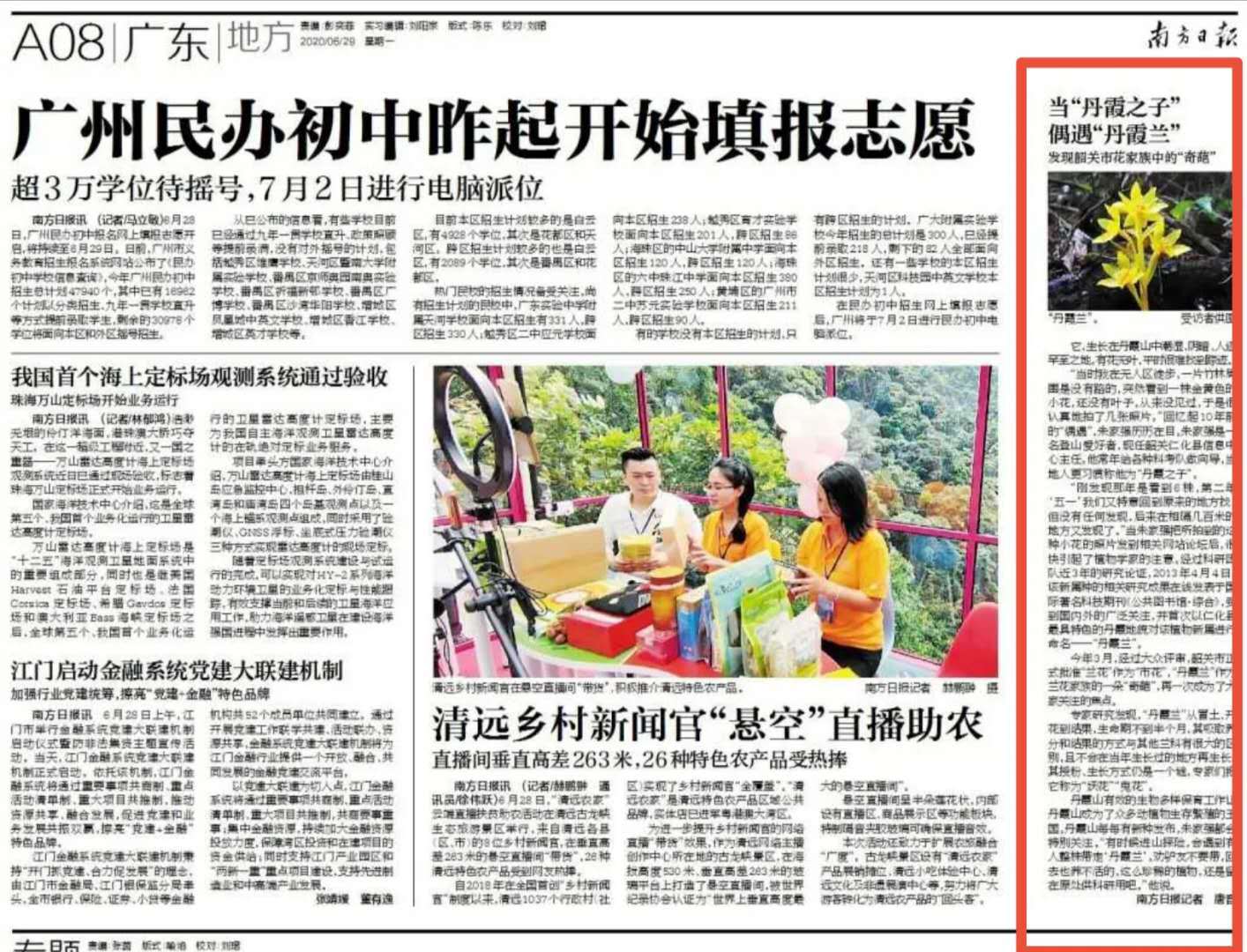 2010年5月1日,在丹霞一座小山谷,一片竹中布滿了枯藤落葉的小空地,他們“偶遇”,自此開(kāi)啟了一段科研之旅;2013年,仁化縣政府聯(lián)合國(guó)際自然保護(hù)聯(lián)盟蘭花專家組亞洲委員會(huì)、中國(guó)蘭科植物保育委員會(huì)召開(kāi)新聞發(fā)布會(huì),通報(bào)該縣發(fā)現(xiàn)獨(dú)特的蘭科植物新屬種“丹霞蘭”(Danxiaorchis singchiana),屬極度瀕危的物種;近年來(lái),丹霞山生物多樣性保育工作取得豐碩成果,不斷涌現(xiàn)新種;今年3月,經(jīng)過(guò)大眾評(píng)審,韶關(guān)市正式批準(zhǔn)“蘭花”作為“市花”,丹霞蘭作為蘭花家族的一朵“奇葩”,再一次成為了大家關(guān)注的焦點(diǎn),從發(fā)現(xiàn)至今十年間,因其生長(zhǎng)環(huán)境的特殊性,目前人工栽培無(wú)法成活,其生長(zhǎng)方式依然是個(gè)謎。