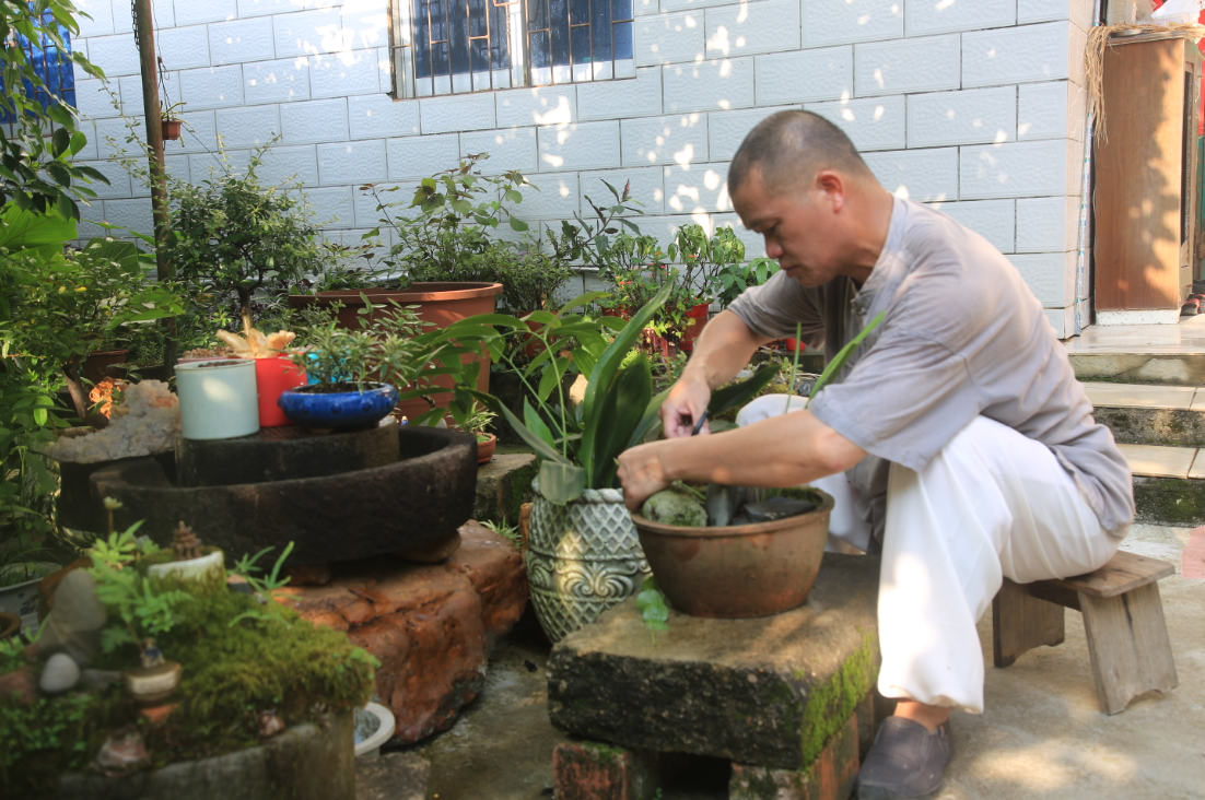 朱家強(qiáng)在自家院子理精心養(yǎng)護(hù)丹霞山植物。