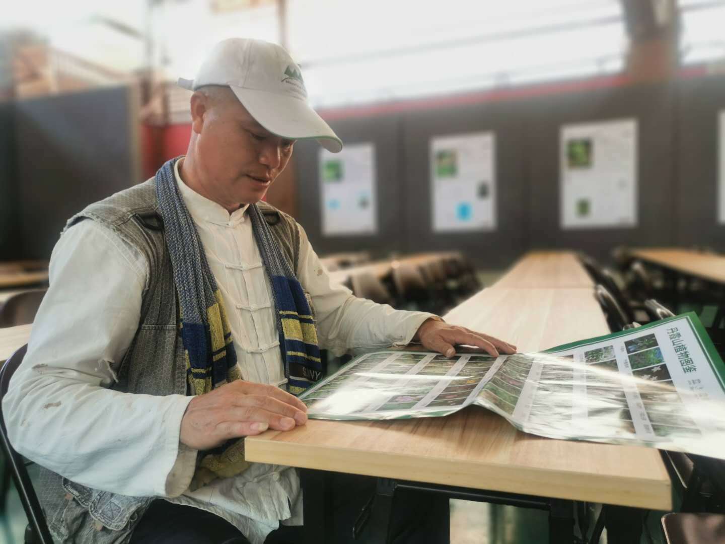 朱家強(qiáng)對(duì)丹霞山植物圖鑒上的品種如數(shù)家珍。唐音 攝