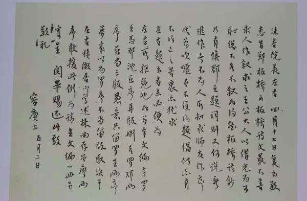中華人民共和國成立后,郭沫若官居政務(wù)院副總理兼文教委主任、中科院院長、全國人大副委員長等職,炙手可熱。容庚稱他“仍孜孜不倦地從事學(xué)術(shù)研究,十分關(guān)懷古文字的研究工作”。郭沫若幾次到廣州,都曾與容庚相見,“真正得以歡聚一堂,縱談古今”,但天南地北,他們見面機會并不很多,聯(lián)系還是以通信為主。此時通信,互相間已不再是“沫若先生”、“希白吾兄”這樣親切的稱呼,而是容庚稱郭為“沫若院長左右”,郭則稱容為“希白同志”。
