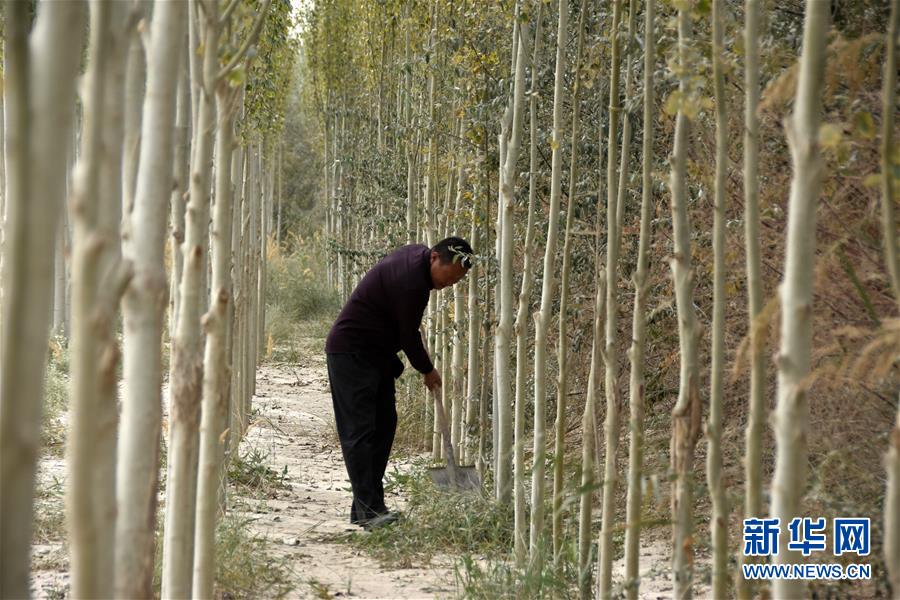 蔡振峰在他種植的防風(fēng)林內(nèi)勞作(10月2日攝)。新華社記者 顧煜攝