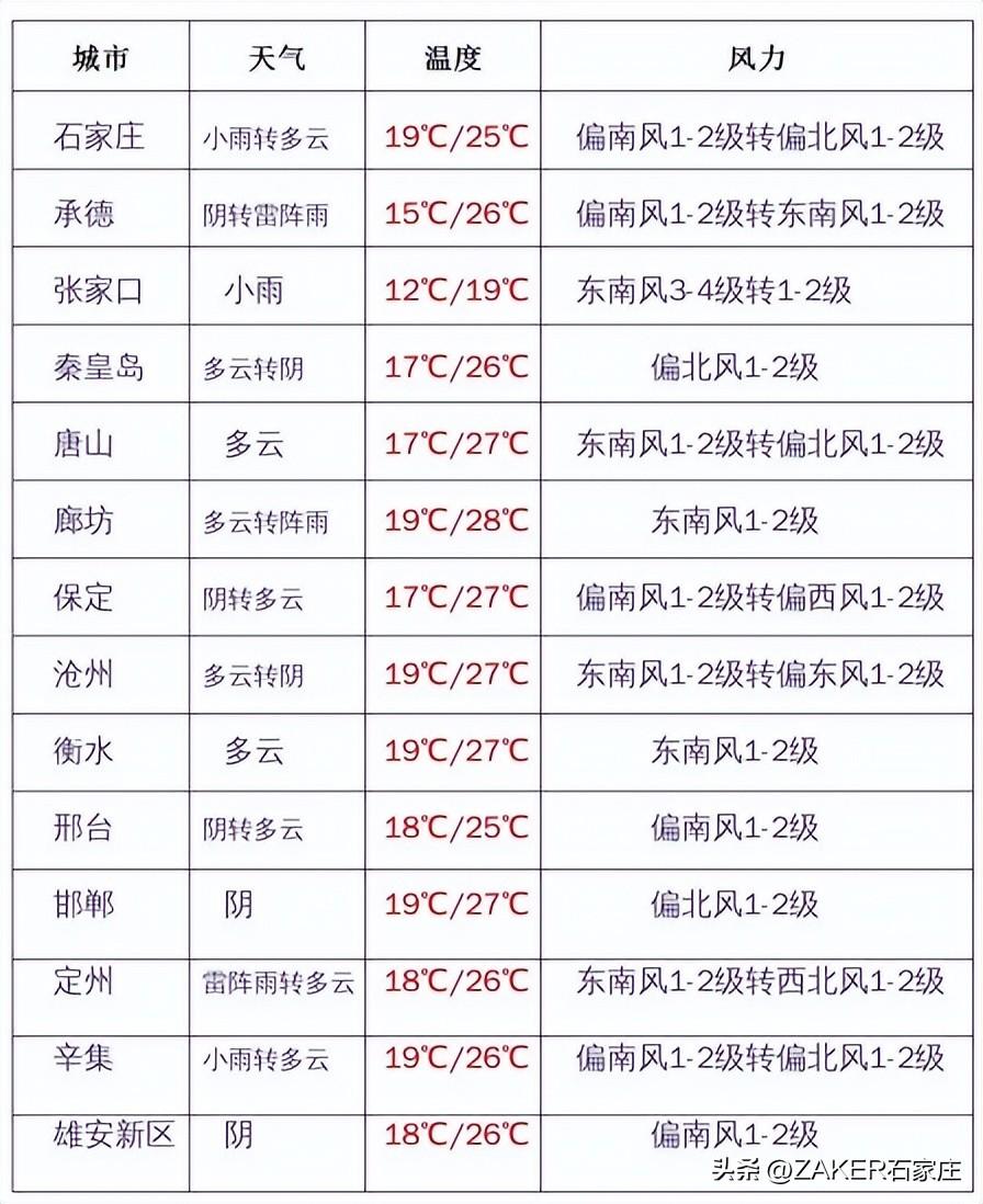 今天白天,張家口、承德西部、保定中西部、石家莊、邢臺西部、邯鄲西部陰有雷陣雨或陣雨,其中張家口、保定西部局地有中雨到大雨,其他地區(qū)多云轉(zhuǎn)陰。