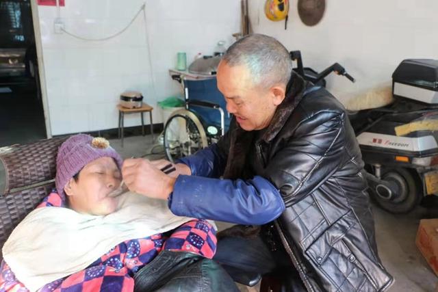 在妻子今年57歲鐘秀英癱瘓、茫然無(wú)助的8余年里,作為丈夫的林汝桃照顧妻子洗漱、包攬家里大大小小的家務(wù),并且還會(huì)細(xì)心的幫助她管理飲食來(lái)穩(wěn)定血壓。