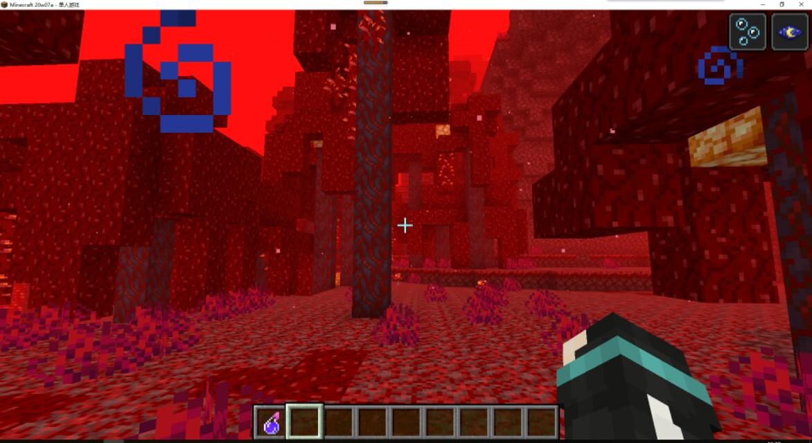描述:緋紅菌巖(crimson_nylium)的貼圖是地獄巖(netherrack)上加了一塊紅色表皮。