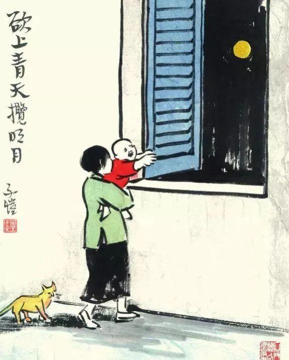 他畫(huà)吵著要月亮的孩子,是李白詩(shī)中的“欲上青天攬?jiān)隆保?/span>