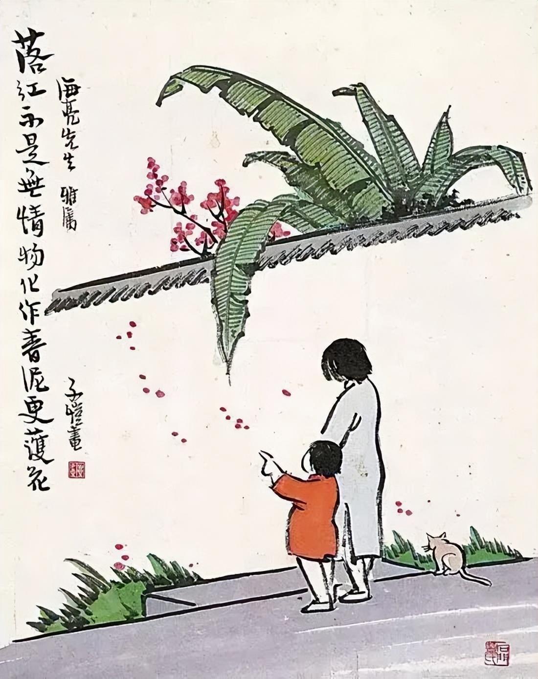 因?yàn)楫?huà)里洋溢著濃濃的童趣,所以時(shí)至今日,豐子愷的畫(huà),依然廣泛出現(xiàn)在孩子們的課本上。