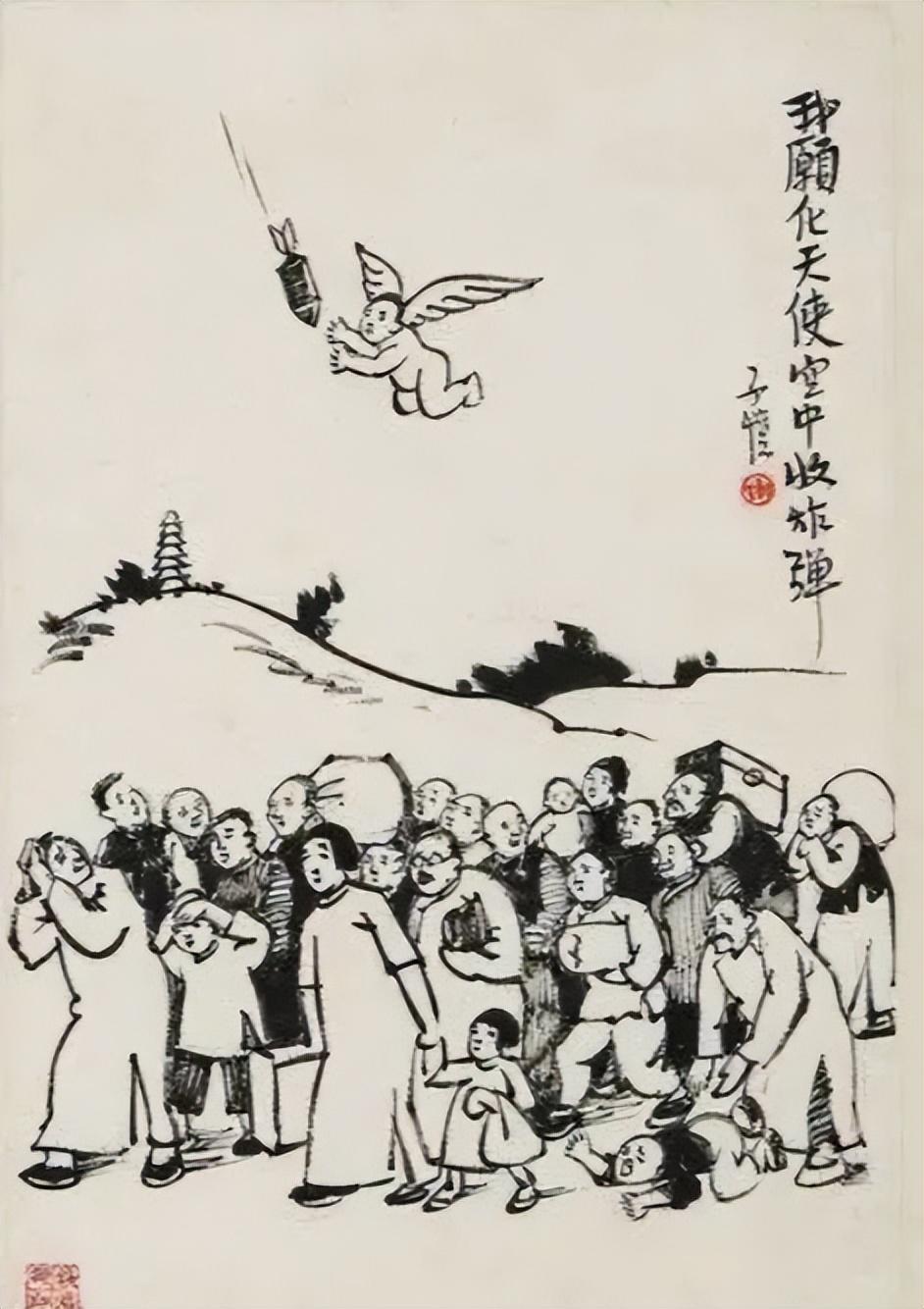 他畫(huà)自己變成天使,擋下空中的炸彈;
