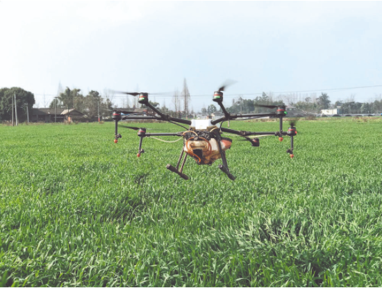 一望無際的田地上空無一人,一架無人機盤旋在麥田上空噴藥、施肥……看著田里來回穿梭的無人植保機,王伶俐心里踏實了不少?!敖衲瓴捎昧藷o人植保機等科技化、機械化設(shè)備,工作率是人工的幾十倍?!?/p>