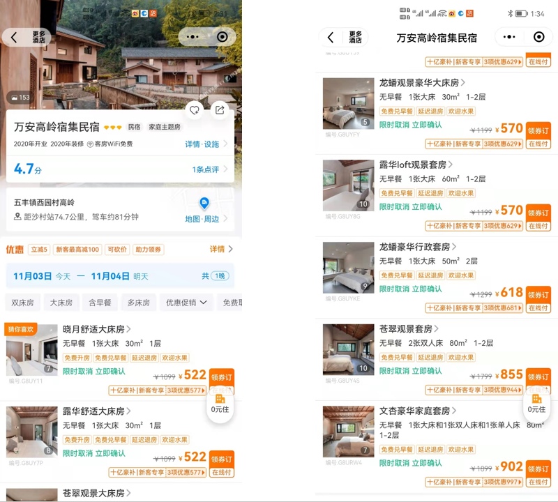 在開始施工的時候,我們是拿騾子拉建材的狀態(tài)。到項目中途不光是我想放棄,我們公司很多的同事都因為壓力太大提出離職。但是我們后來還是堅持住了,真的在銀杏葉黃之前開業(yè)了,而且運營狀況特別好,民宿預(yù)訂率超過95%,可以說是一個成功的案例。