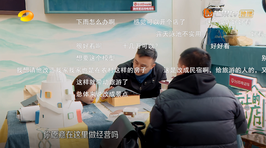前幾個月我們在村里發(fā)動了很多次村民大會,一家家上門走訪,還給每家的產(chǎn)業(yè)做短視頻進(jìn)行宣傳……現(xiàn)在一期改造已經(jīng)開工了,同樣是村民自己花錢,有的做新建,有的要改造外立面,對于每一家我們都盡量幫他們實現(xiàn)自己的居住理想。