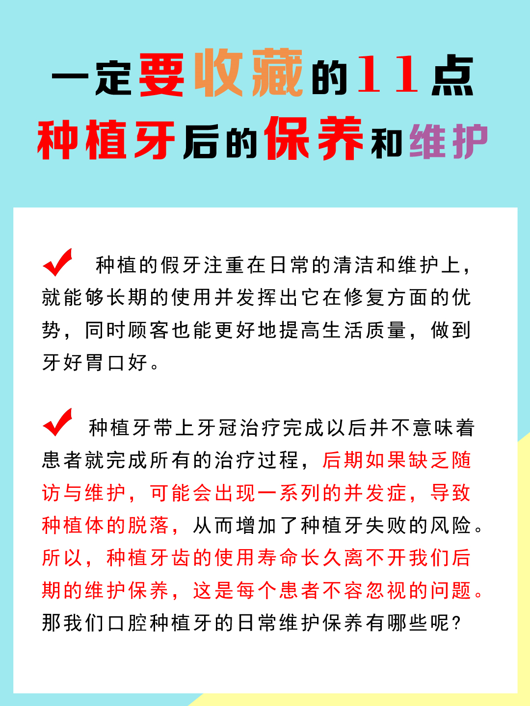 這是每個患者不容忽視的問題,那我們口腔種植牙的日常維護保養(yǎng)有哪些呢?