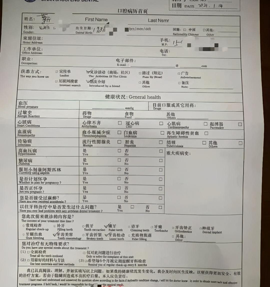 關(guān)于帶有個(gè)人簽名的口腔病歷,靳先生頗為肯定地表示,自己不記得簽過這份病歷,懷疑是診所事后偽造的。“介紹我來(lái)的朋友跟我有生意往來(lái),知道我的簽名啥樣,診所應(yīng)該是通過他偽造了我的簽名。1月19日,歷下區(qū)衛(wèi)計(jì)局醫(yī)政科前來(lái)調(diào)解時(shí),李大夫才拿出來(lái)這份病歷,之前我從來(lái)沒見到過?!苯壬f(shuō),他事后想申請(qǐng)筆跡鑒定,但由于自己手里只有復(fù)印件,被鑒定中心告知無(wú)法受理,目前維權(quán)陷入僵局。新時(shí)報(bào)記者試圖致電靳先生朋友劉某了解情況,對(duì)方拒絕回答問題,直接掛斷了電話。