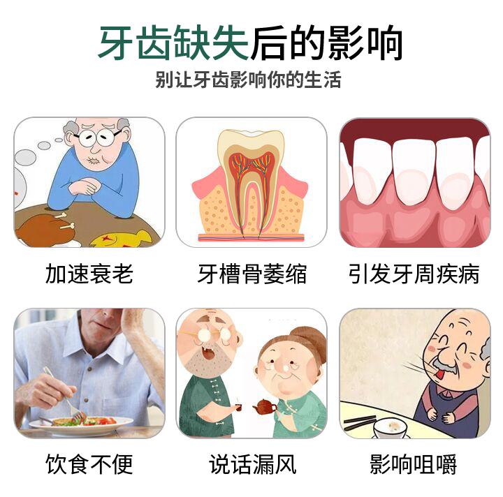 牙齒缺失會(huì)引起鄰牙松動(dòng)、對(duì)牙伸長(zhǎng)、引發(fā)牙周病終牙齒脫落等一系列問(wèn)題。種植牙是醫(yī)學(xué)界公認(rèn)的理想修復(fù)方式,被譽(yù)為“人類的第三副牙”。相比活動(dòng)假牙不舒服、難清洗、容易引起口腔黏膜病變,種植牙更穩(wěn)固耐用,舒適美觀,咀嚼功能好。